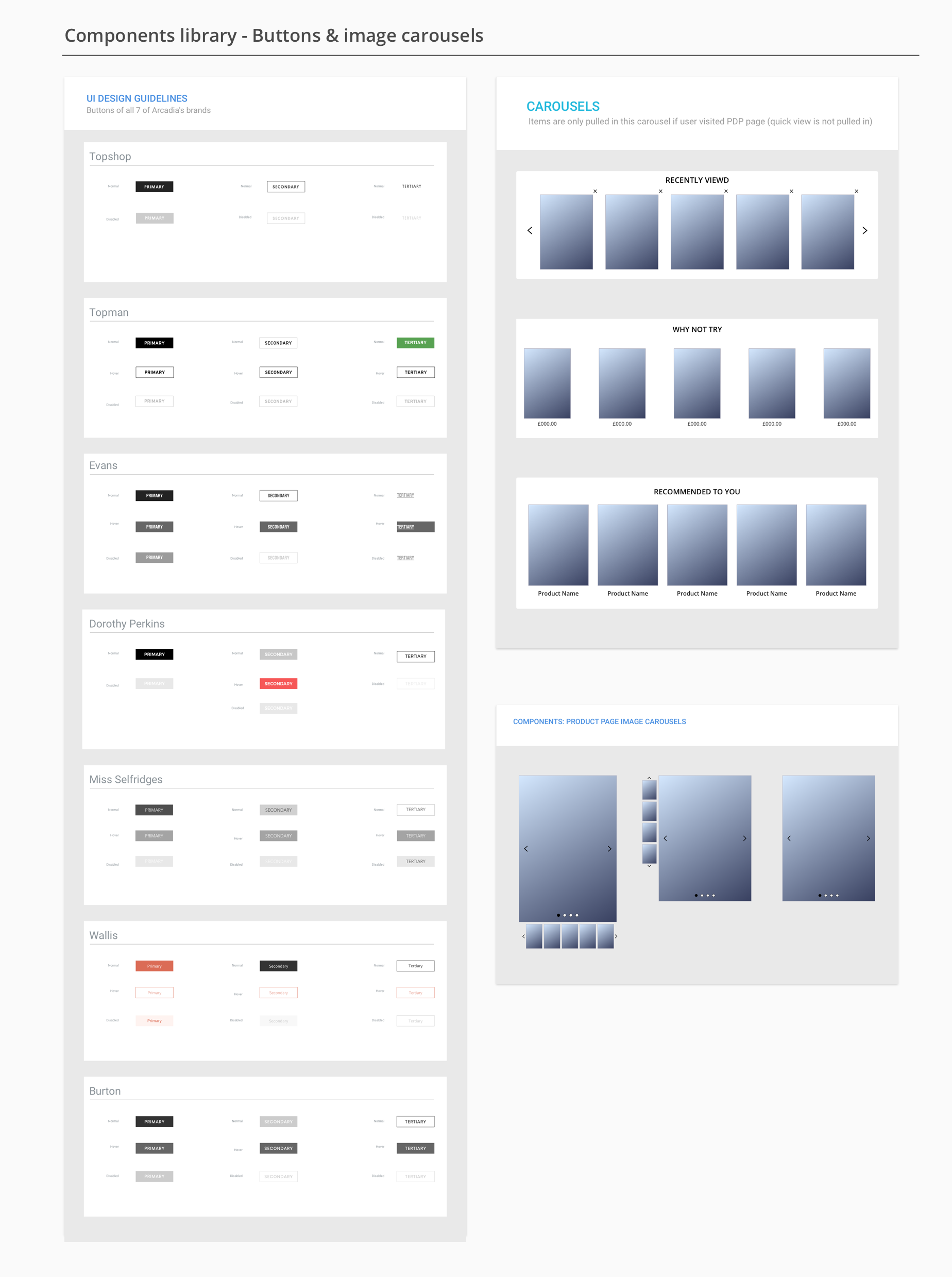 Our role was to bridge the gap between the brand representatives, the project managers and the development teams. Working closely with the developers we created a design system that gives designers a fast and easy way to design a webpage as well as easy implementation following each brand style guide. We created and shared wireframes on a weekly basis with the brands design teams and Arcadia’s development team to gather feedback and ensure optimal user experience.